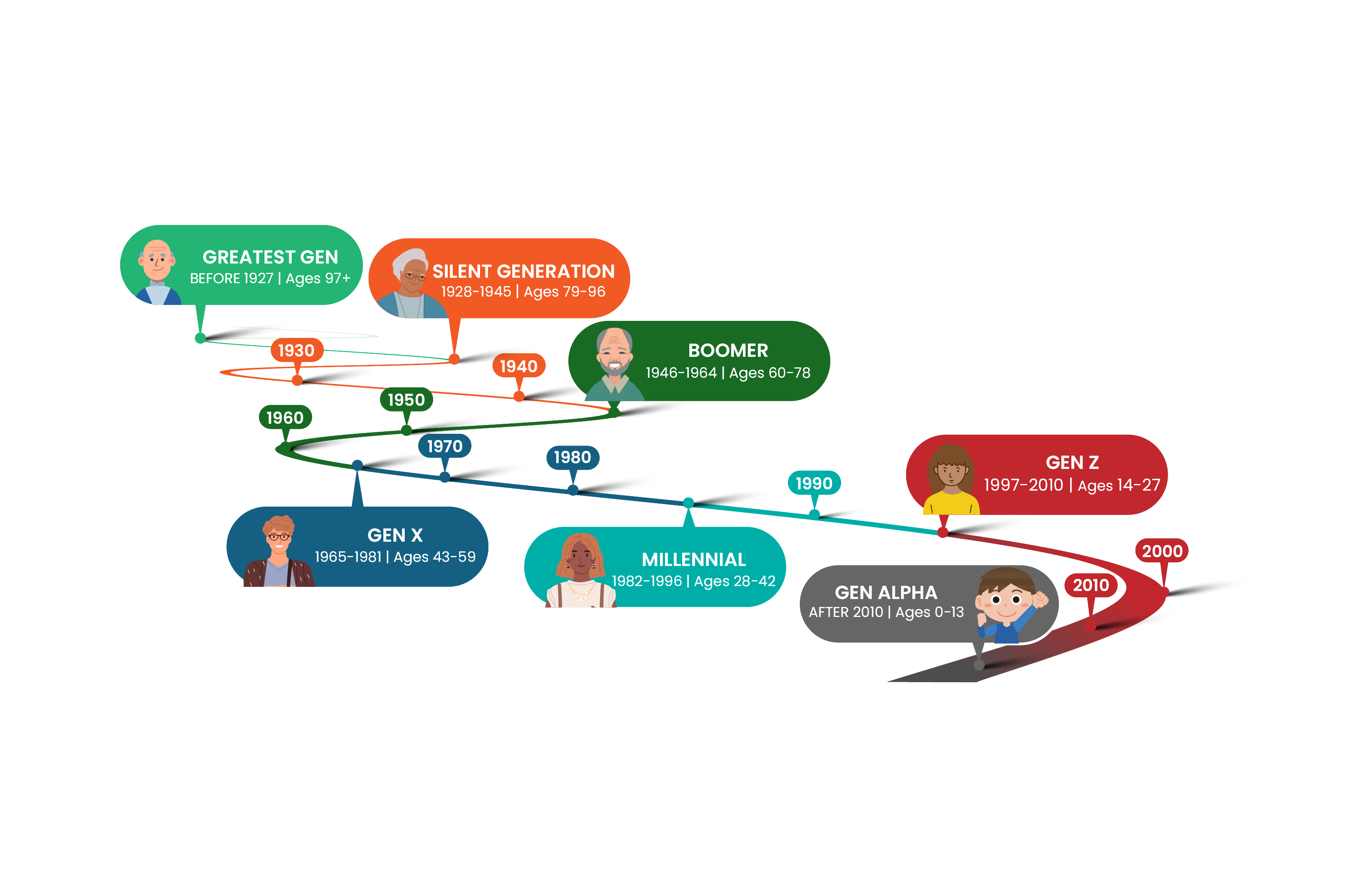 Gen Z, Millennials, Gen X, and Boomers.