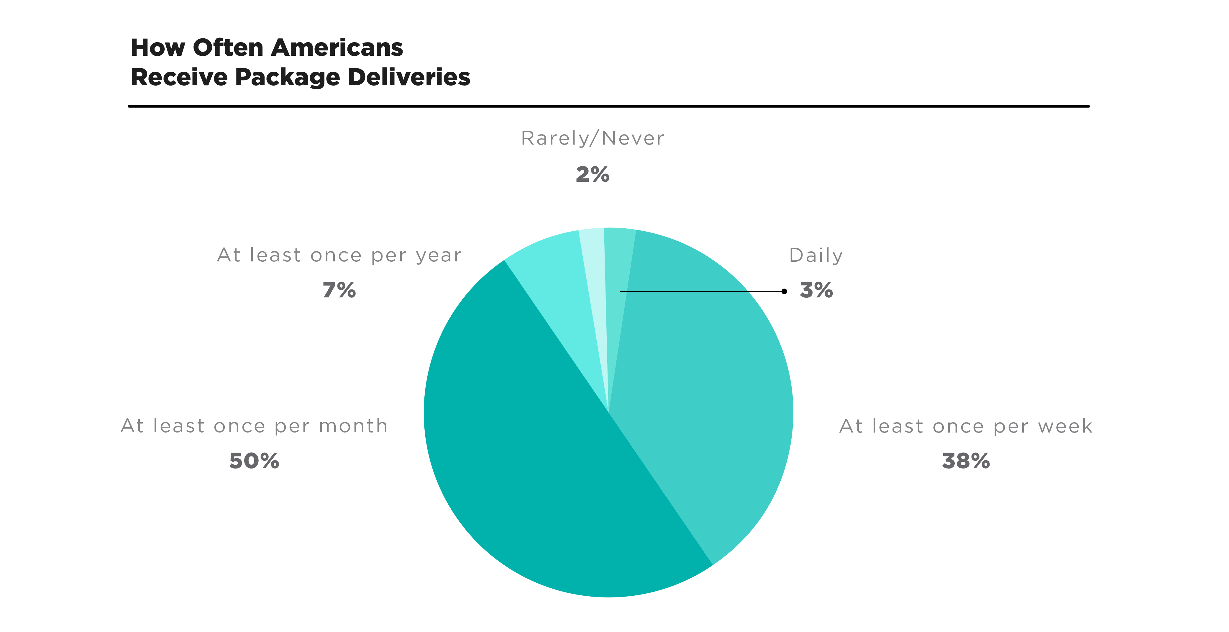 According to respondents, the overwhelming majority (91%) receive a package delivery at least once per month, with approximately 4 in 10 receiving package deliveries at least weekly.