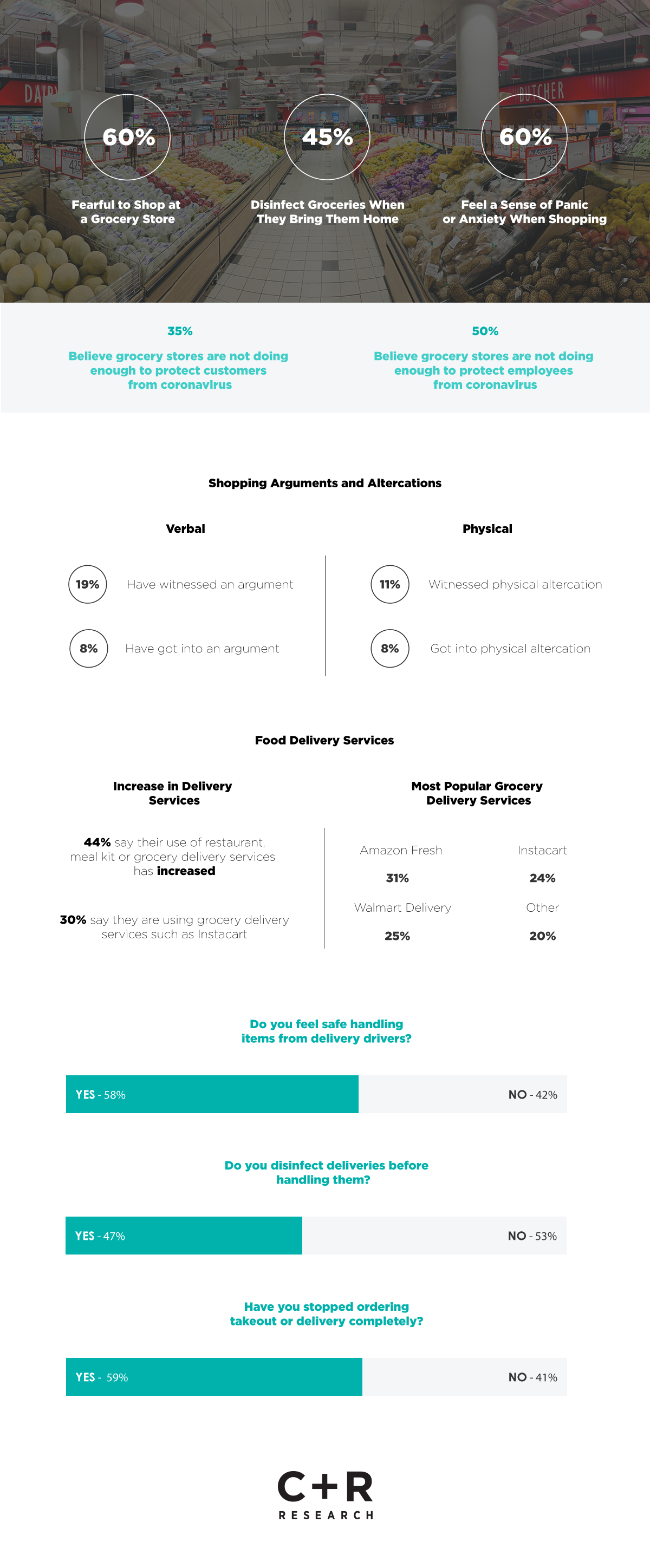 From March 27 to March 28, 2020, we asked 2,012 consumers about their grocery shopping and delivery experiences during the COVID-19 pandemic. Specifically, we asked consumers how their shopping habits, budgets, experiences, and diets have changed.