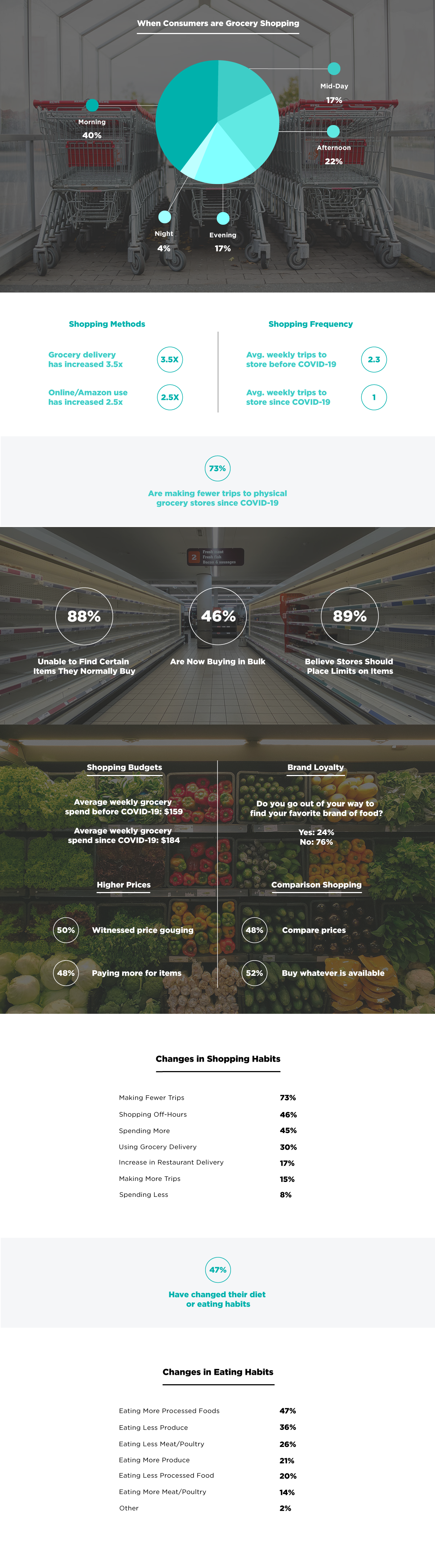 With social distancing guidelines and shelter-in-place orders being implemented due to the COVID-19 pandemic, the way consumers shop for their groceries has changed. In order to limit contact, many are taking precautions such as ordering groceries through delivery apps or making less trips to the grocery store.