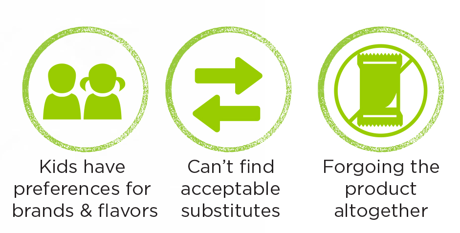 4. Children’s picky palates make it difficult to substitute some of their favorites. In addition, kids have specific tastes that parents are unable to fulfill now because of lack of availability. They have preferences for specific brands and flavors, and parents are having a difficult time finding acceptable substitutes, so they are forgoing the product altogether.