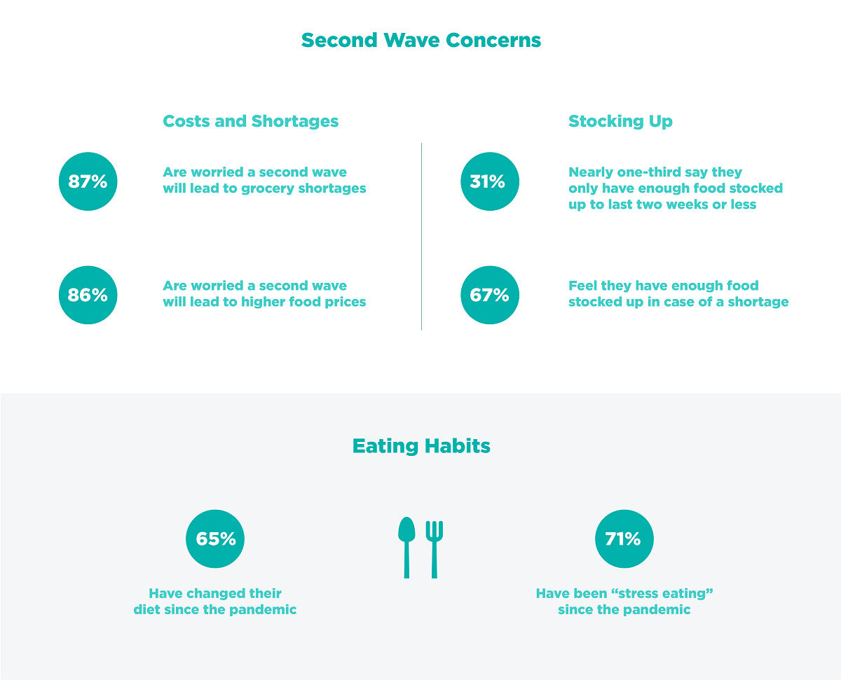 According to consumers, most (87%) fear it will lead to grocery shortages and a similar proportion (86%) are concerned a second wave would bring even higher prices.