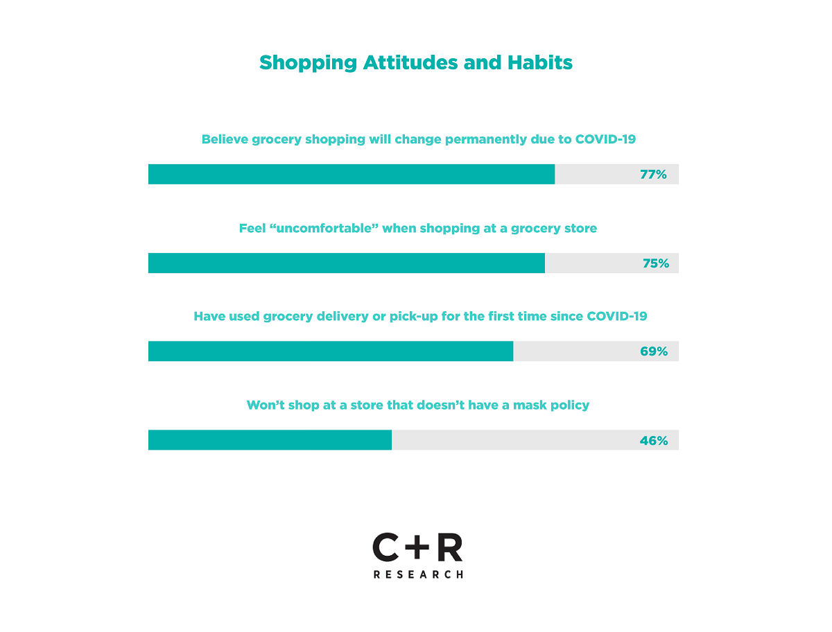 Despite many national grocery chains implementing safety guidelines and putting social distancing policies in place for both shoppers and employees, most consumers still feel uneasy about shopping inside of a store. Attendant to that, over two-thirds (69%) of consumers said they had started using alternative shopping methods like grocery delivery services or grocery pick-up since the start of the pandemic.