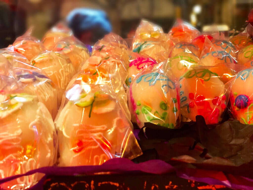 To commemorate this day, families pay their respect by visiting the grave sites of one or more their departed relatives. Some people are praying, while others may be snacking on pan de muerto (bread of the dead), which is a sweet bread specially sold during this time and paired with hot chocolate (or maybe with the preferred beverage of the deceased that is not meant for kids). In some cemeteries, vendors walk around selling colorful calaveras, flowers, candles, incense, and more pan de muerto.