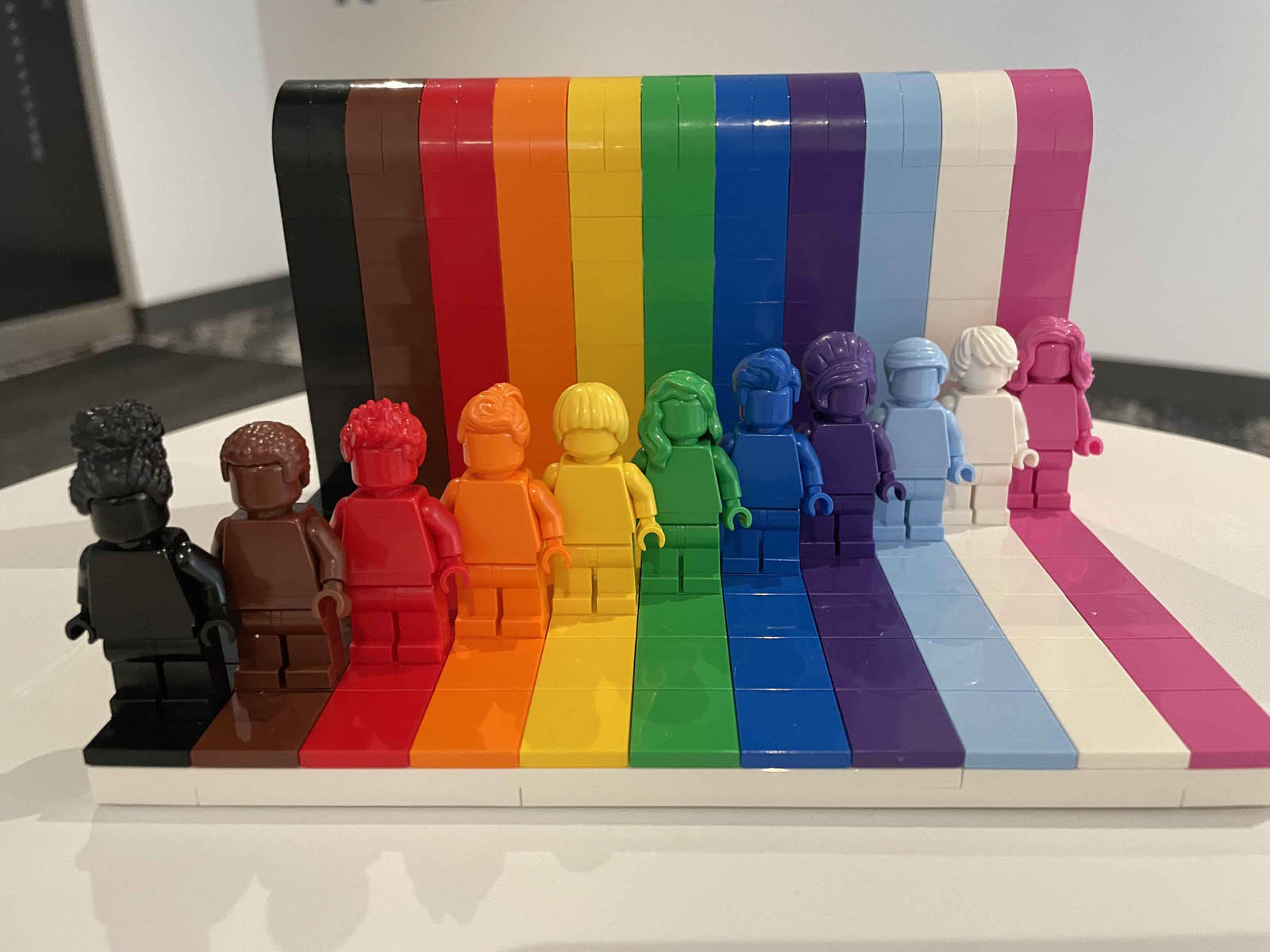 While it is a simple set made of 346 pieces, it makes a bold impact. The colors of the stripes were chosen to reflect the original rainbow flag. Pale blue, white and pink were added to the design to represent the trans community, and black and brown were also added to acknowledge the diversity of backgrounds and skin tones within the LGBTQ+ community. While some might think this set is geared towards a certain community, it’s also for all the allies out there – parents, siblings, co-workers, and others.