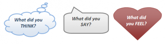 - Storytelling: Describe a specific experience from the last time that you…(insert scenario). What Did You Think? Say? Feel?