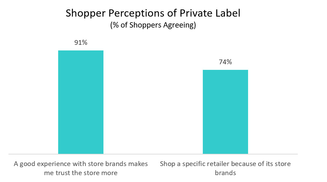 Retailers recognize that private label brands provide benefits beyond price and have become part of what differentiates the retailer from competitors in a very competitive marketplace. In fact, almost ¾ of shoppers go to a specific retailer because of its store brands, showing that private label is creating shopper value and driving traffic for retailers. Additionally, a good store brand experience can also foster greater brand trust for the retailer.