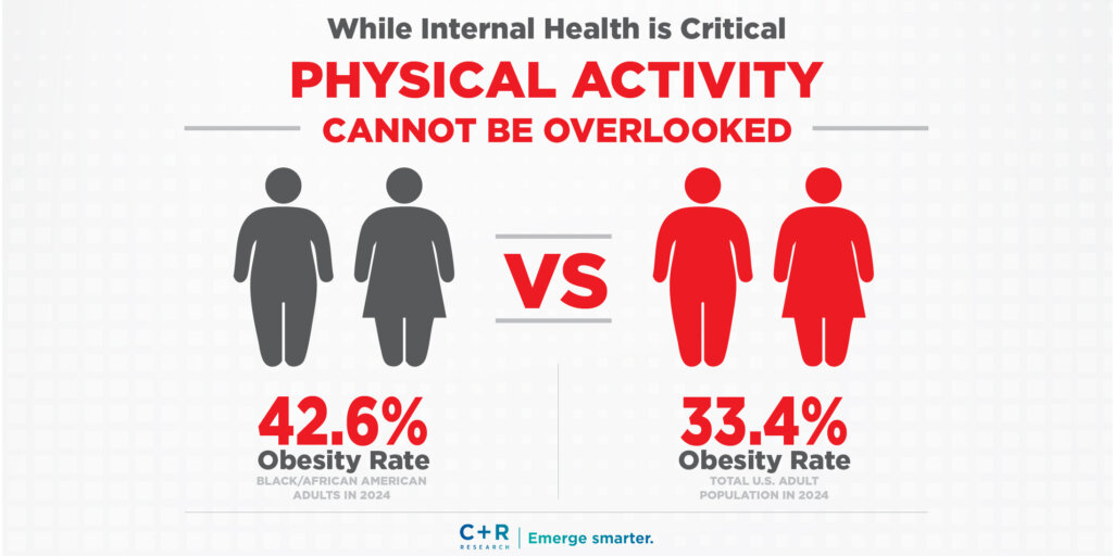 While internal health is critical, physical activity cannot be overlooked. In 2024, 42.6% of Black/African American adults were obese, compared to 33.4% of the total U.S. population. To combat these disparities, Black-owned fitness apparel companies, like Actively Black and Damihow, are not only creating stylish athletic wear but also promoting fitness within the community and supporting organizations that encourage physical activity.