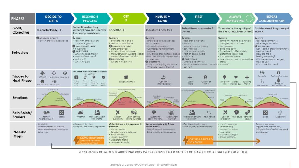 The scope of the journey may span the entire lifespan of a customer’s experience – from awareness through consideration, purchase, and loyalty or abandonment. Or it may be tighter in scope – focused on a specific type of interaction or experience, such as the consumer shopper journey or the onboarding or learning curve with the initial usage of a product or service post-purchase.