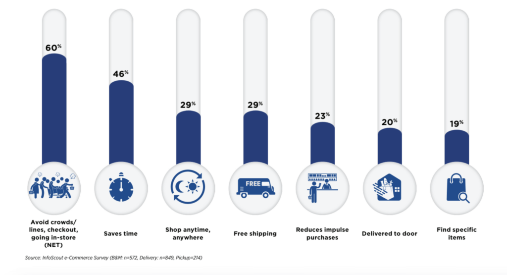 Not surprisingly, when directly asked why they have switched online, we see similar reasons people do most things (convenience, stress reduction, ease, saving money, etc.). These are not unique to making the switch from brick-and-mortar to online. What’s more revealing is understanding the particular moment online became more convenient, faster, easier, etc., that pushed people to overcome the key hurdle of initial setup.