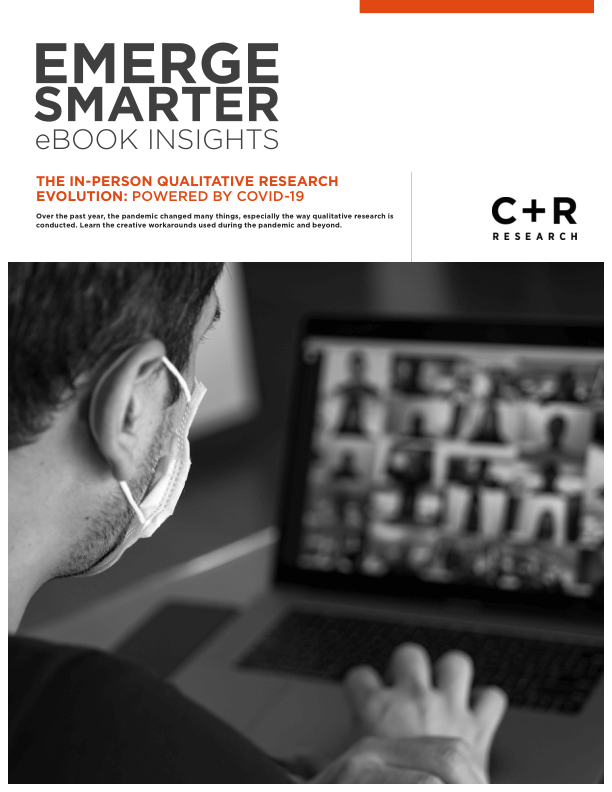 The pandemic has necessitated that “traditional” or “in-person” qualitative researchers become more agile and creative with how they help businesses reach their consumers. At C+R, this has meant reframing our “in-person” qualitative team to our “live” qualitative team and capitalizing more on digital technologies such as webcams and collaborative whiteboard tools.